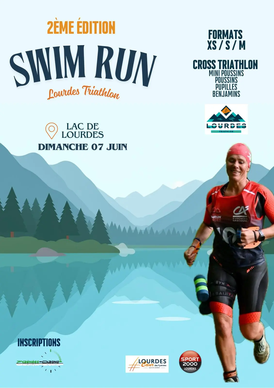 Inscriptions sur Pyrénées Chrono: https://pyreneeschrono.fr/evenement/swimrun-et-cross-triathlon-de-lourdes/